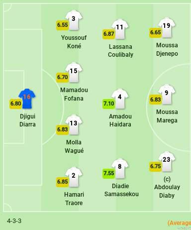 Guinea: Kone; M. Yattara (Kamano 79′), Issiaga Sylla, Diawara, Seka, Falette, M.Camara, Kante (Koita 56′), Cisse (Bangoura 68′), Traore, Dyrestam.