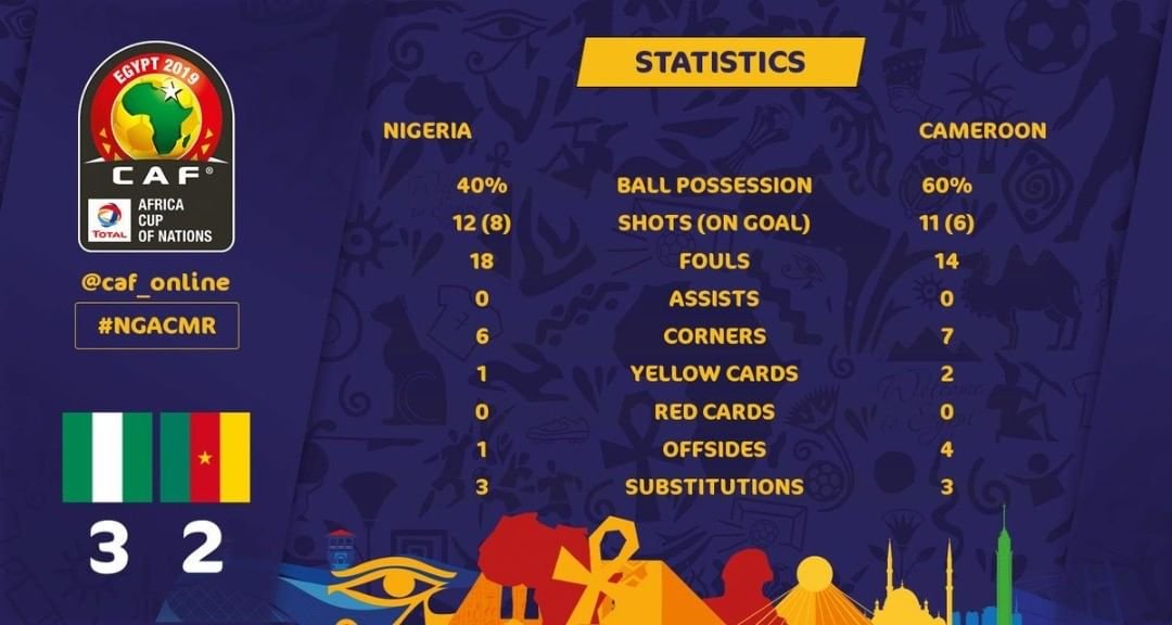 A thrilling match comes to an end as the #SuperEagles knock the #IndomitableLions out of #AFCON2019 with a dramatic 3-2 victory. pic.twitter.com/IOpRZDdva2— SuperSport ???? (@SuperSportTV) July 6, 2019